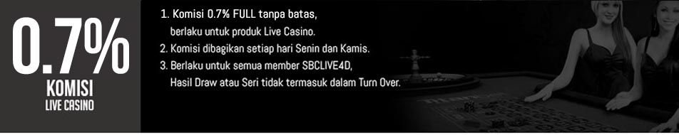 * Komisi 0.7% FULL tanpa batas, berlaku untuk produk Live Casino.